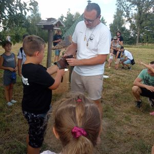 To właśnie Pan Piotr i jego pomocnik z Fundacji Skrzydła Lasu byli największymi mistrzami Pikniku w Rudnie. A najwspanialszymi bohaterami: sokół Julek, sowa Elbi i jastrząb Bonita.