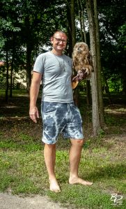 Panowie z Fundacji wiedzieli wszystko o swoich podopiecznych. Co jedzą, co lubią, a czego nie. Co Nic dziwnego. Edukacja przyrodnicza, spotkania z dziećmi… Piotr lubi to na równi z pomaganiem latającym przyjaciołom.